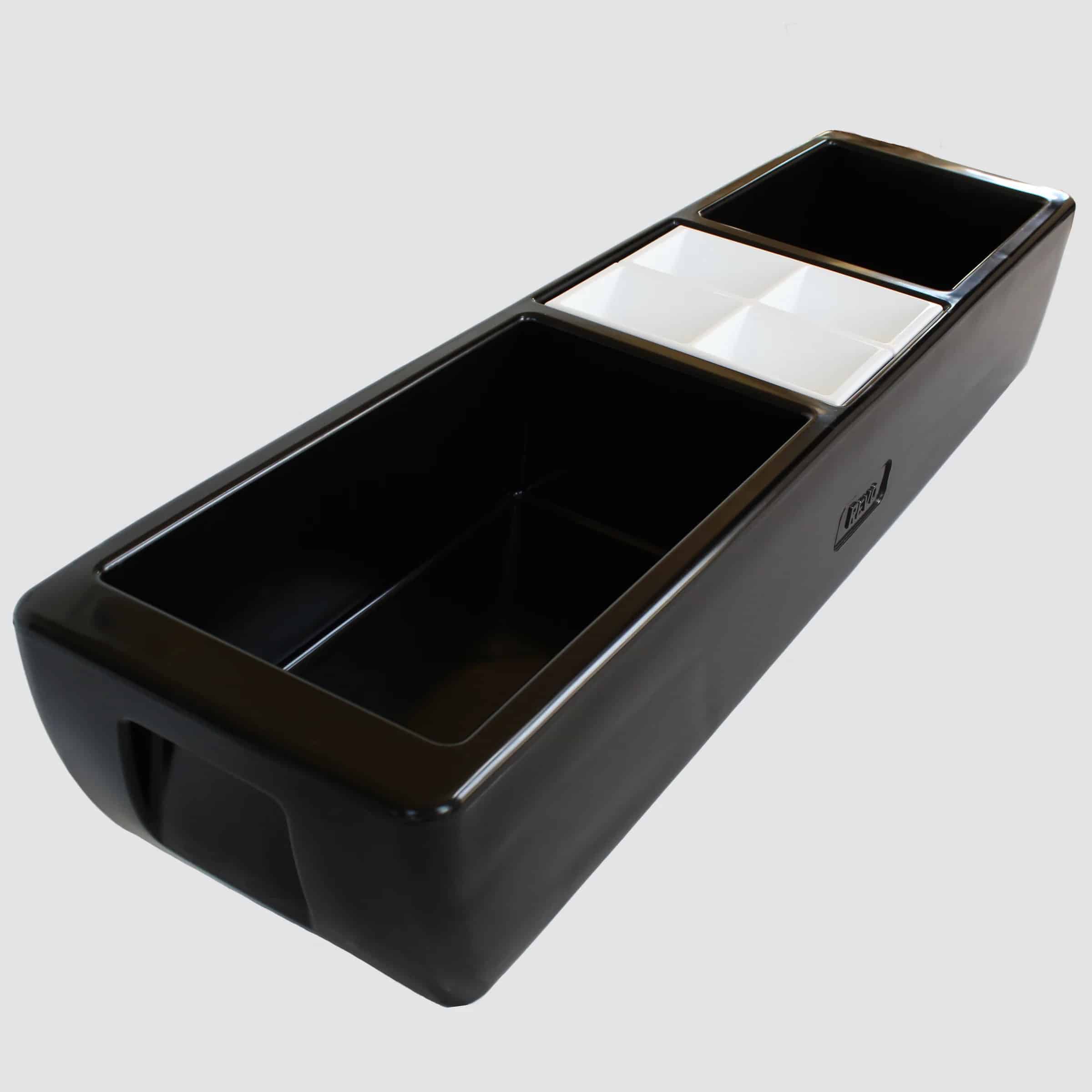 Step up your home party or tailgate game with the Deep Black Party Barge. This multi-use party barge is the perfect serving station or beverage tub for all types of gatherings and events. This handy beverage tub can be used as an ice bucket, beer or wine cooler, food display, and more! It holds hot or cold items and allows your guests to easily serve themselves. The three handy compartments can be used to hold almost anything from hot dogs to cans of beer. The compartments are even thick enough that hot and cold items can be placed right next to one another.